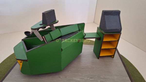 Bevor der erste Kassenstand aber gebaut werden konnte, gab es ein Modell. Hartwin Tackenberg baute dieses Modell maßstäblich und seine Frau fertigte dazu eine Puppe an.