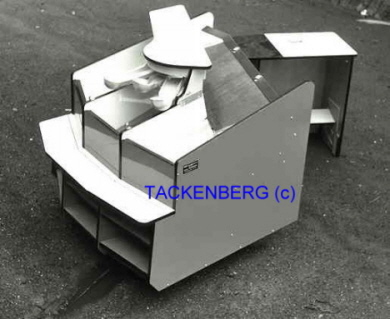 Tackenberg stellte dazu einen "abgespeckten" Warenzellenklassenstand zur Verfügung. Das Modell VM (es stand und steht für Verbrauchermarkt). Es handelt sich hierbei um den meist verkauften Kassenstand der Welt, wenn man so will den