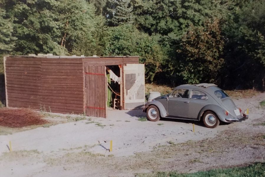 Ich bekam zum Geburtstag einen 1969-er VW Käfer in dunkelgrün. Natürlich war er abgemeldet aber noch fahrbereit und so konnte ich damit auf unserem Privatgelände erste Erfahrungen sammeln.