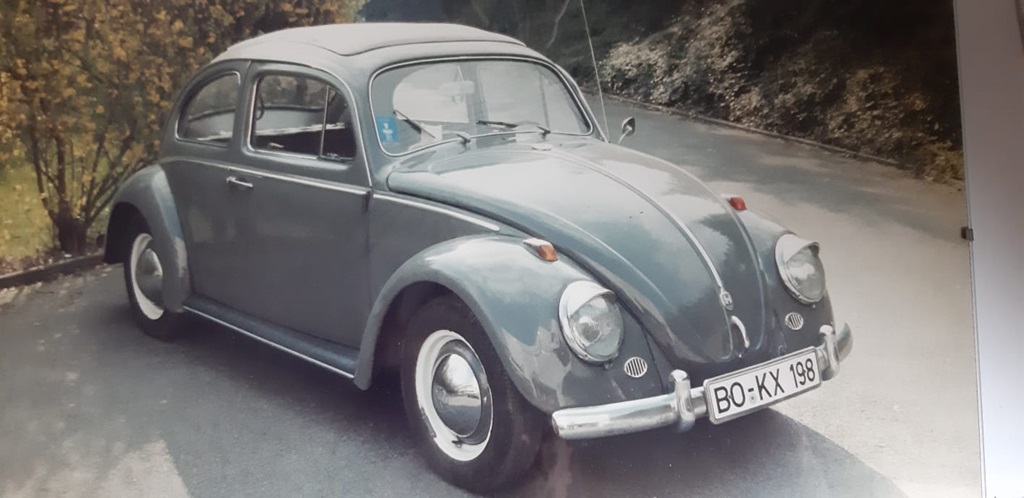 Eigentlich wollte ich nur gerne einen Oldtimer fahren. So suchte ich mir einen VW-Käfer, Baujahr 1961 aus. Es handelte sich um den ersten Käfer nach den Brezelfenstern. Er hatte eine durchgehende, kleine, ovale Rückscheibe. Die Elektrik war auf 6 Volt und es handelte sich um das Standard-Modell in mausgrau.