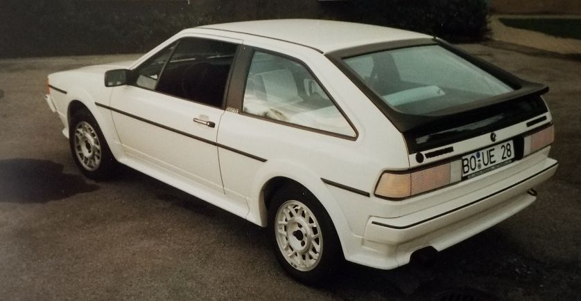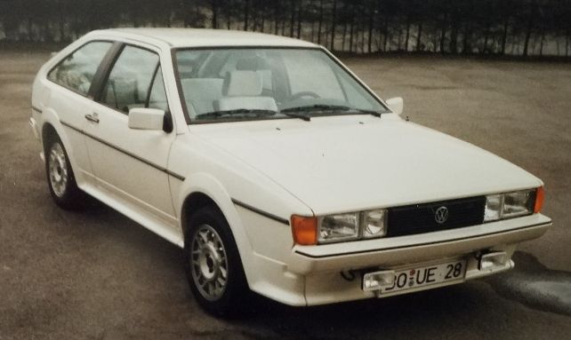 Dann mein erstes eigenes Fahrzeug. Ein VW Scirocco GT von Karmann gebaut, komplett in weiß mit weißen Sportschalensitzen. Ein Traum von Auto, weiße Rennverkleidung. Er hatte nur 85 PS aber man fuhr damit wie in einem Kart. Man konnte die Kurven fast mit Höchstgeschwindigkeit fahren. Extrem breite Reifen auf Alufelgen ließen diese Kurvengeschwindigkeiten zu, dazu der Radstand. Somit konnte man mit wesentlich schnelleren Fahrzeugen problemlos mithalten. Die Gänge ließen sich extrem hochdrehen, so dass man das Fahrzeug extrem spritzig fahren konnte. 7 Liter Sprit auf 100 km mehr brauchte es nicht. Leider war der Reifenabrieb sehr hoch und das kostete. Im Winter fuhr ich ganz dünne Reifchen, 155er meine ich. In jedem Fall kam man damit auch durch hohe Schneemengen, problemlos.